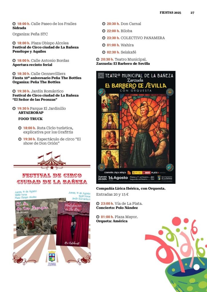 - Festival de circo infantil y zarzuela El barbero de Sevilla.