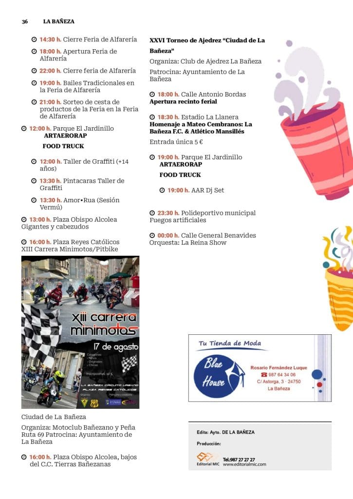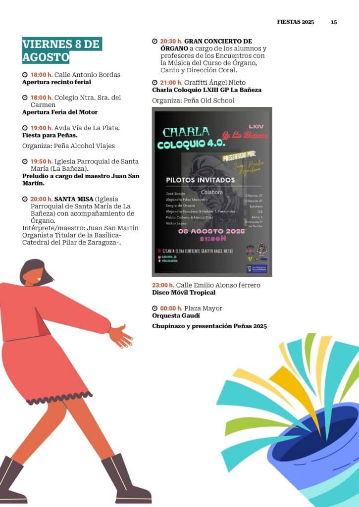 La ciudad de La Bañeza se prepara para vivir unas fiestas inolvidables en honor a Nuestra Señora de la Asunción y San Roque. Música en directo, actividades para todas las edades y la emoción del Gran Premio de Velocidad atraerán a miles de personas durante diez días llenos de vida.